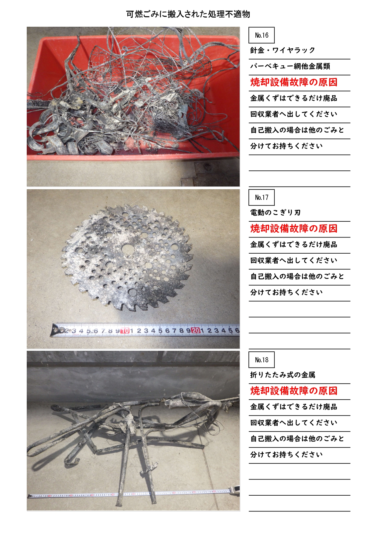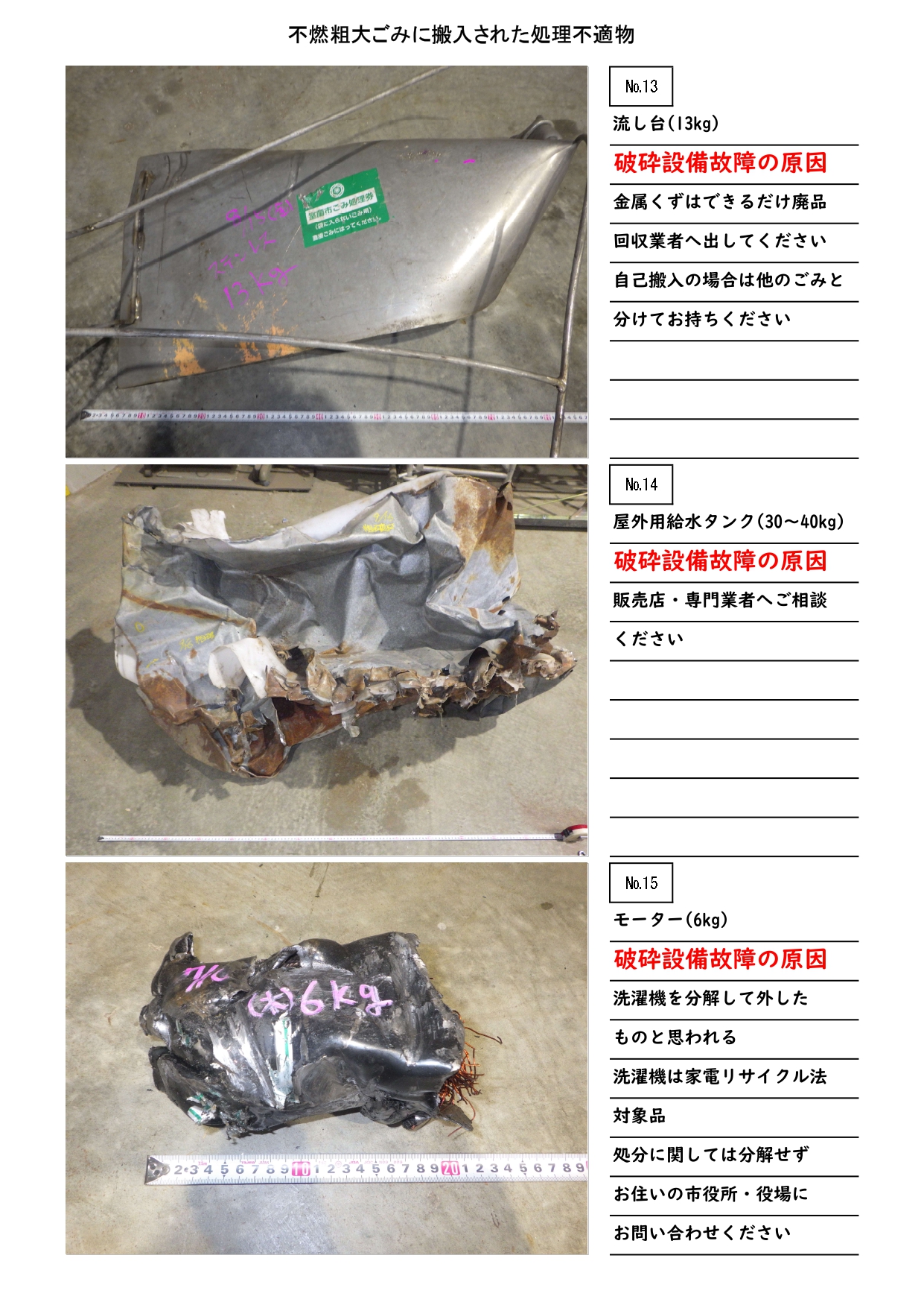 【設備故障や火災に繋がるごみが搬入されて困っています。】