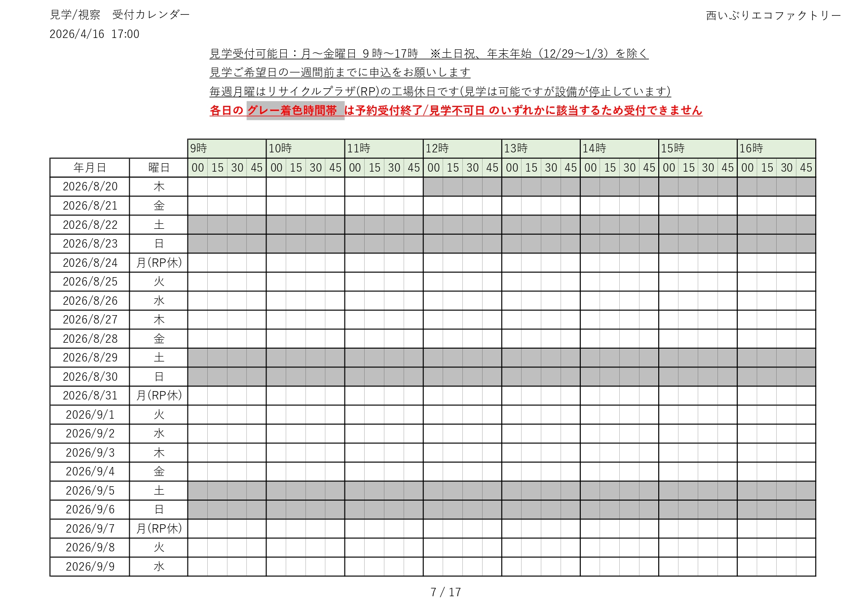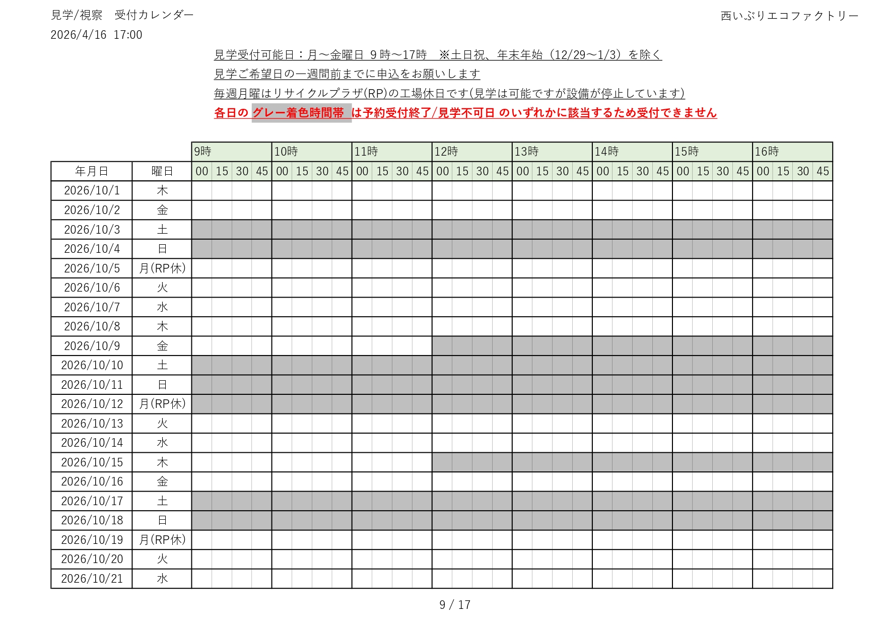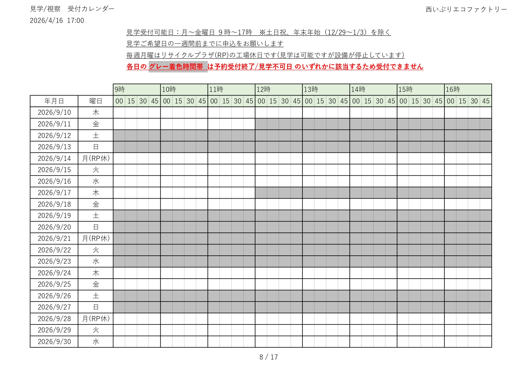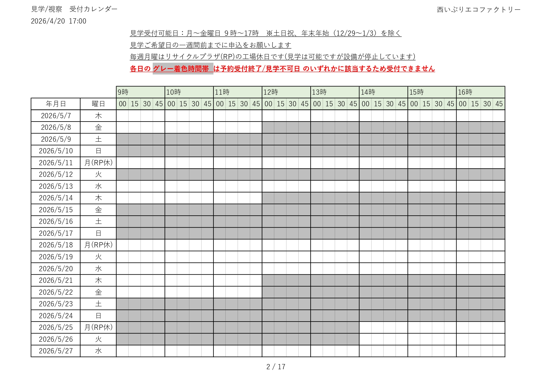 令和8(2026)年度 見学の受付(予約)状況をお知らせします