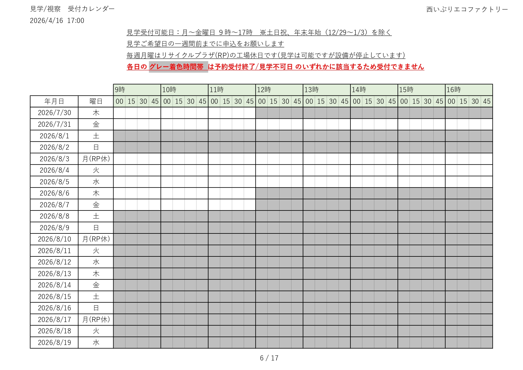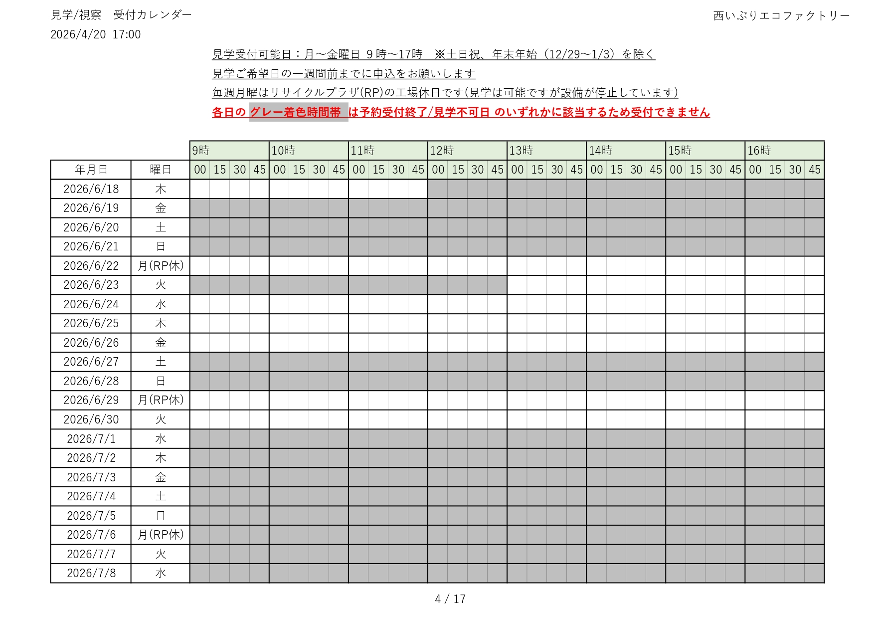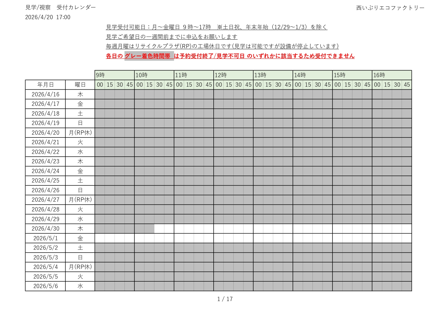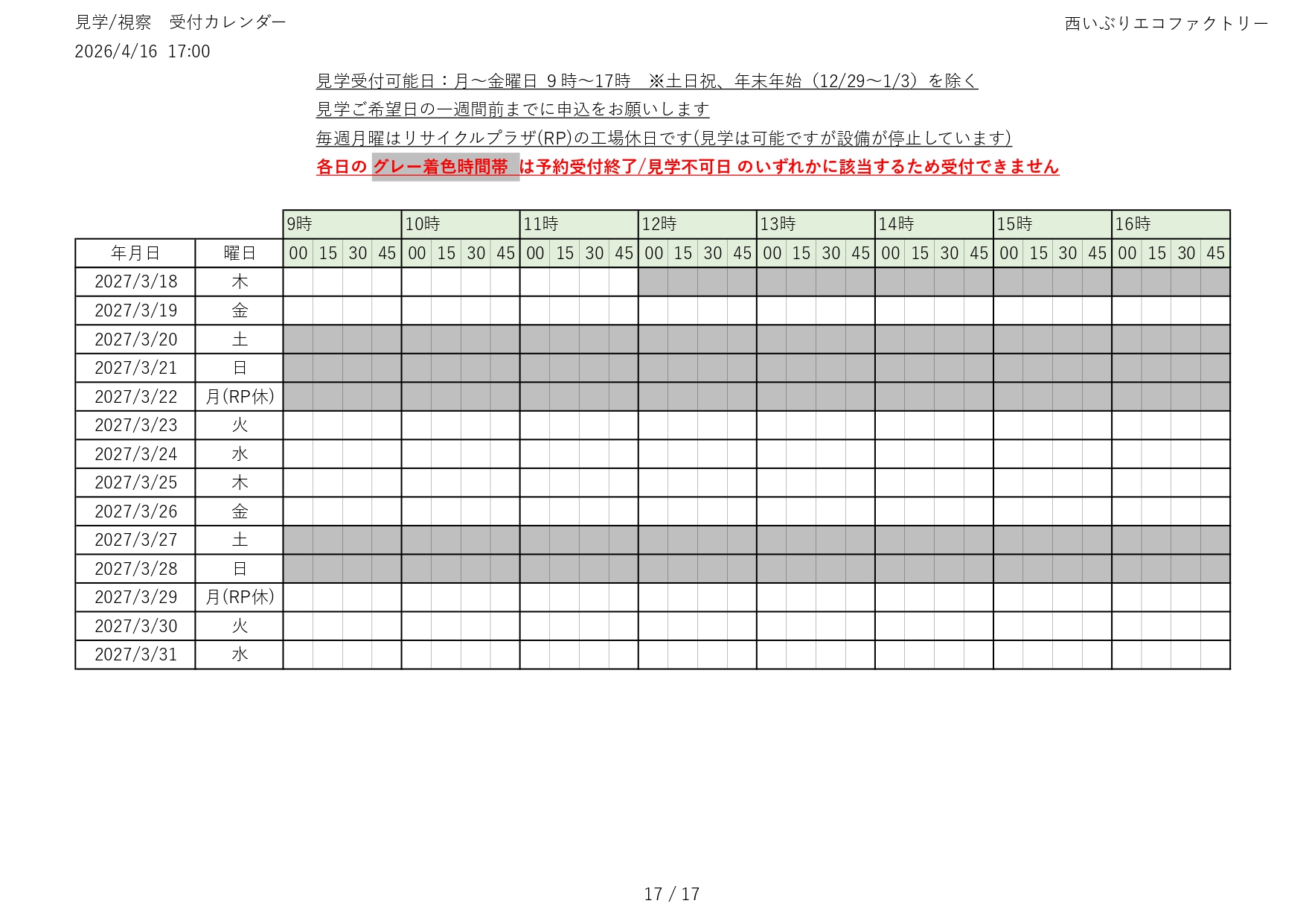 令和8(2026)年度 見学の受付(予約)状況をお知らせします