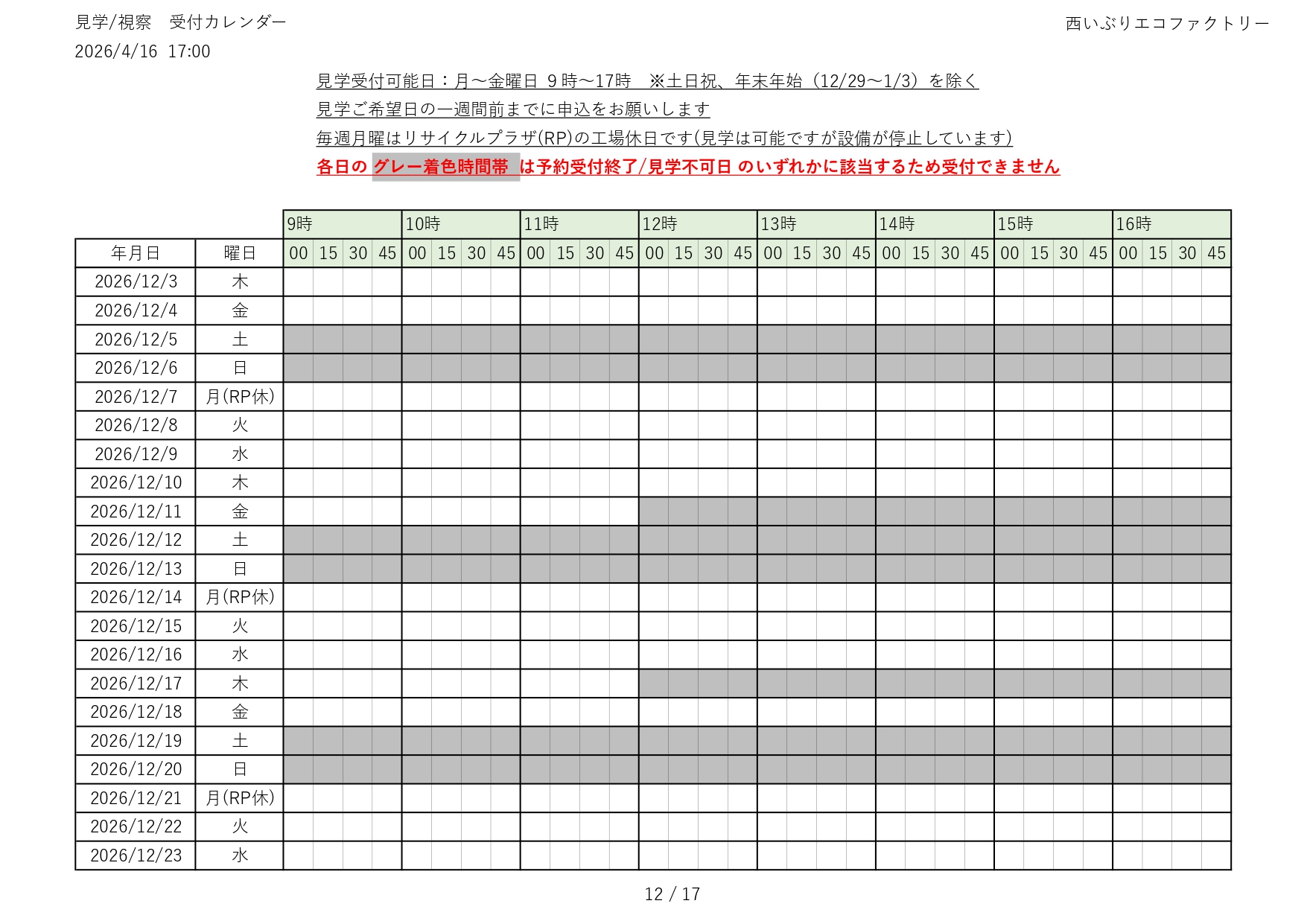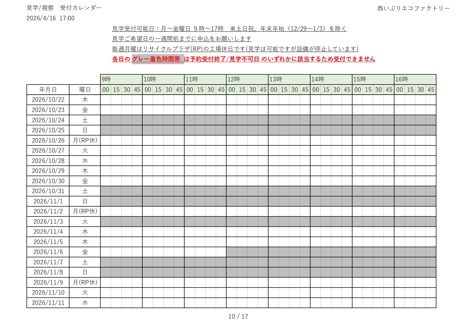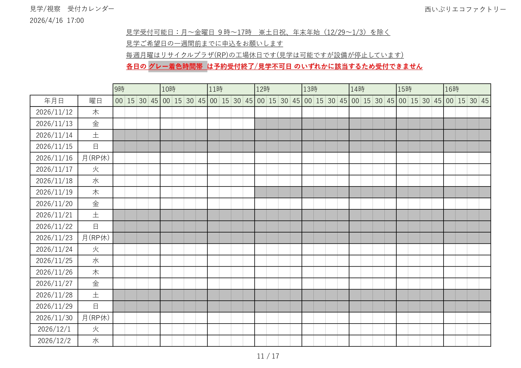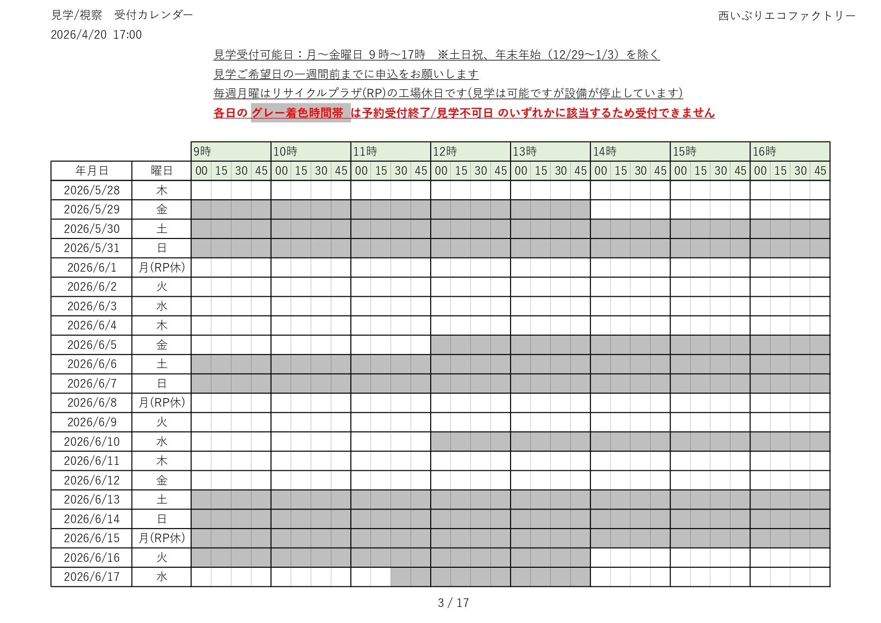令和8(2026)年度 見学の受付(予約)状況をお知らせします
