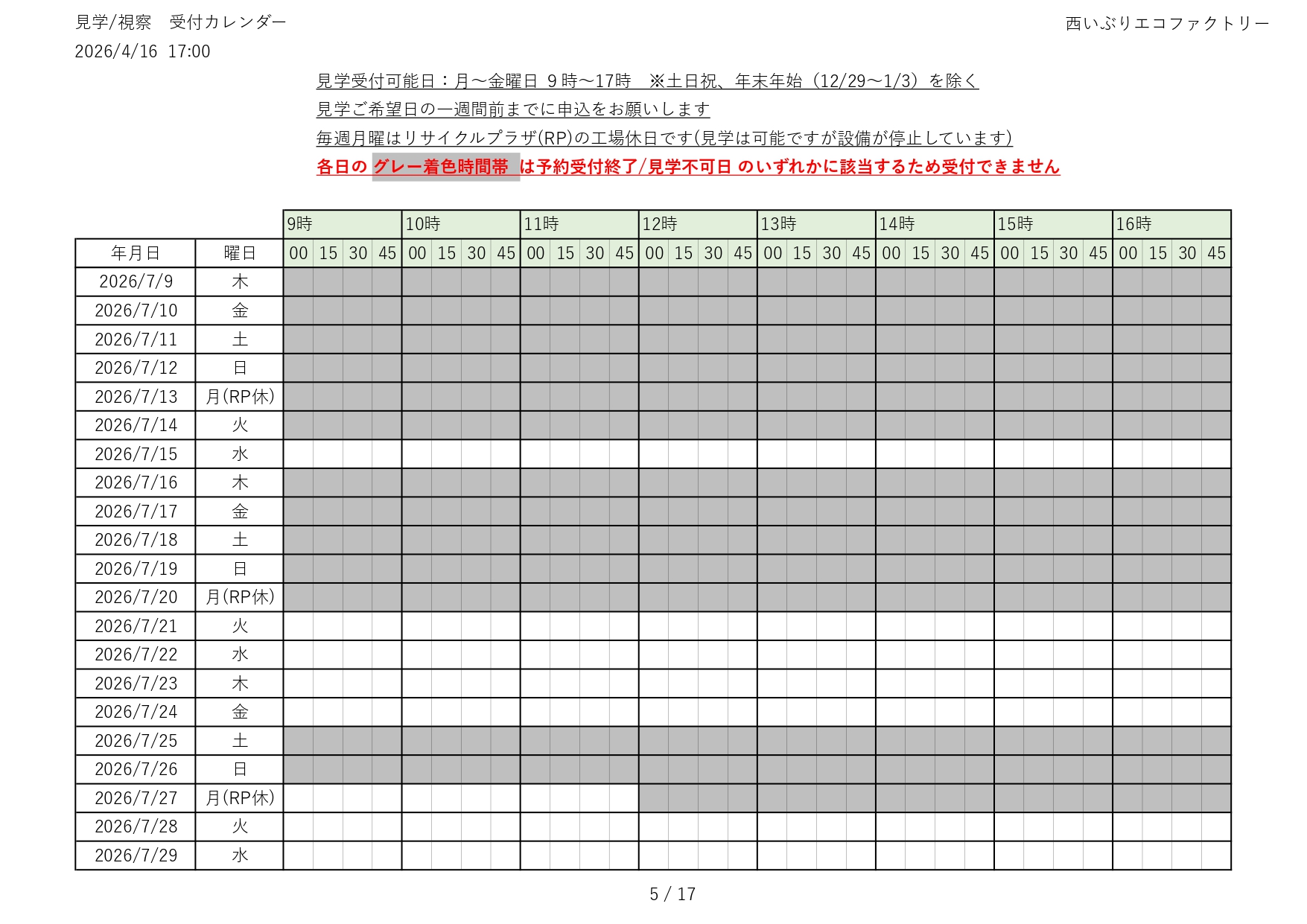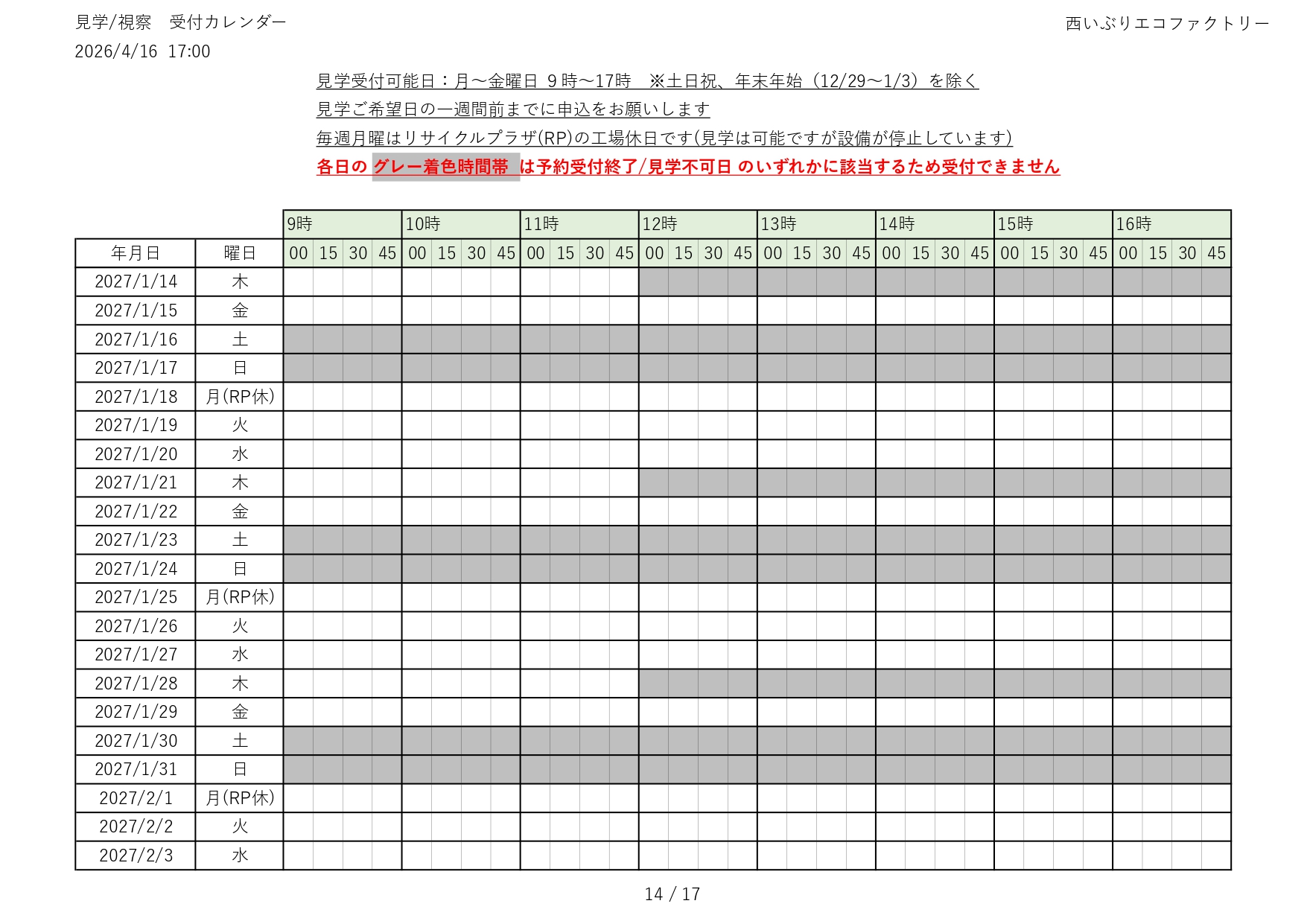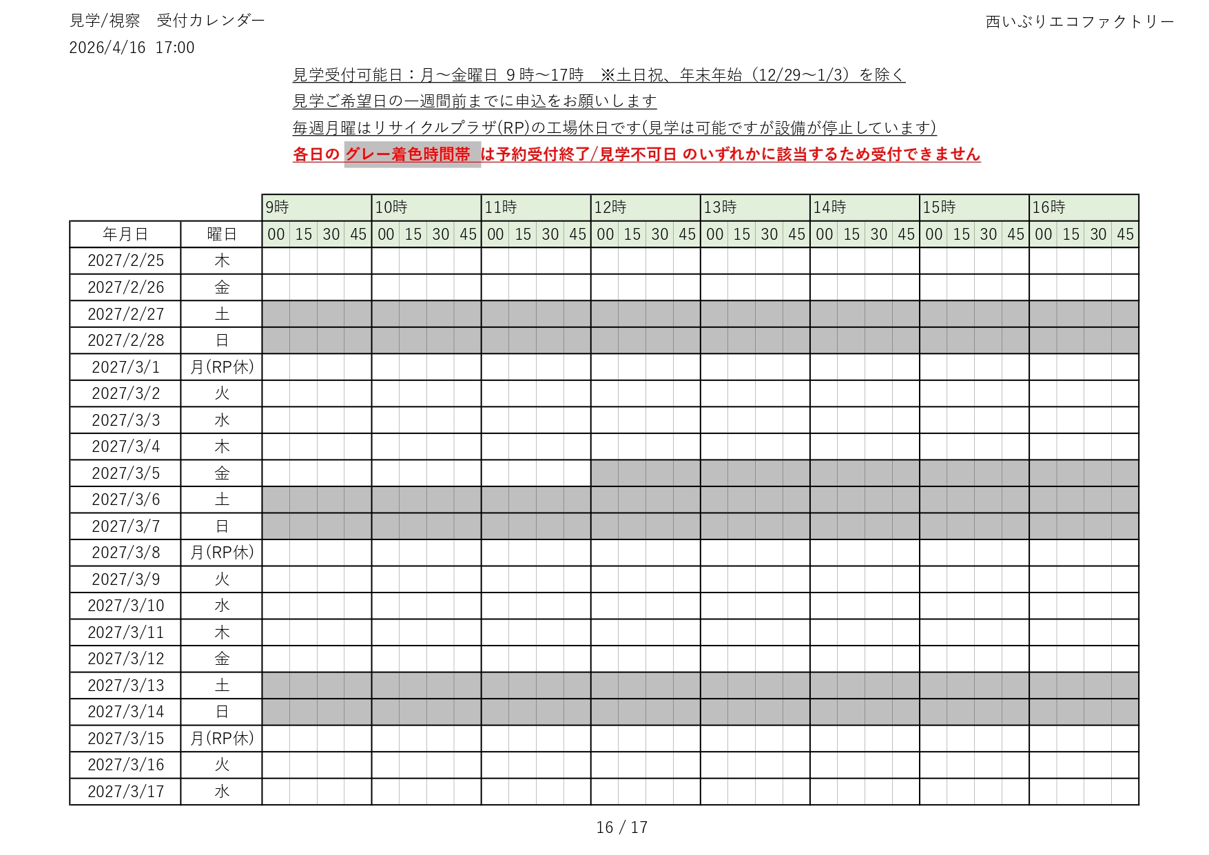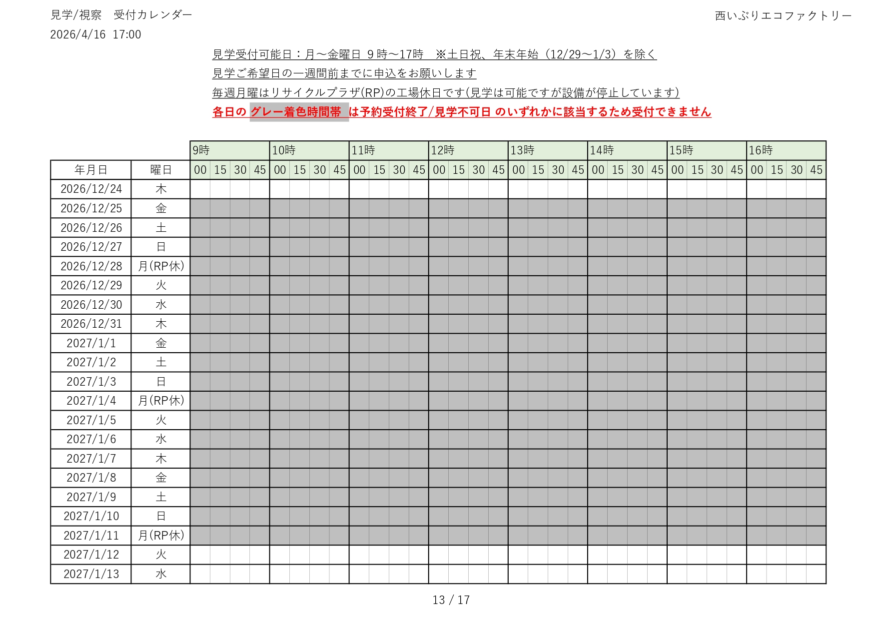 令和8(2026)年度 見学の受付(予約)状況をお知らせします