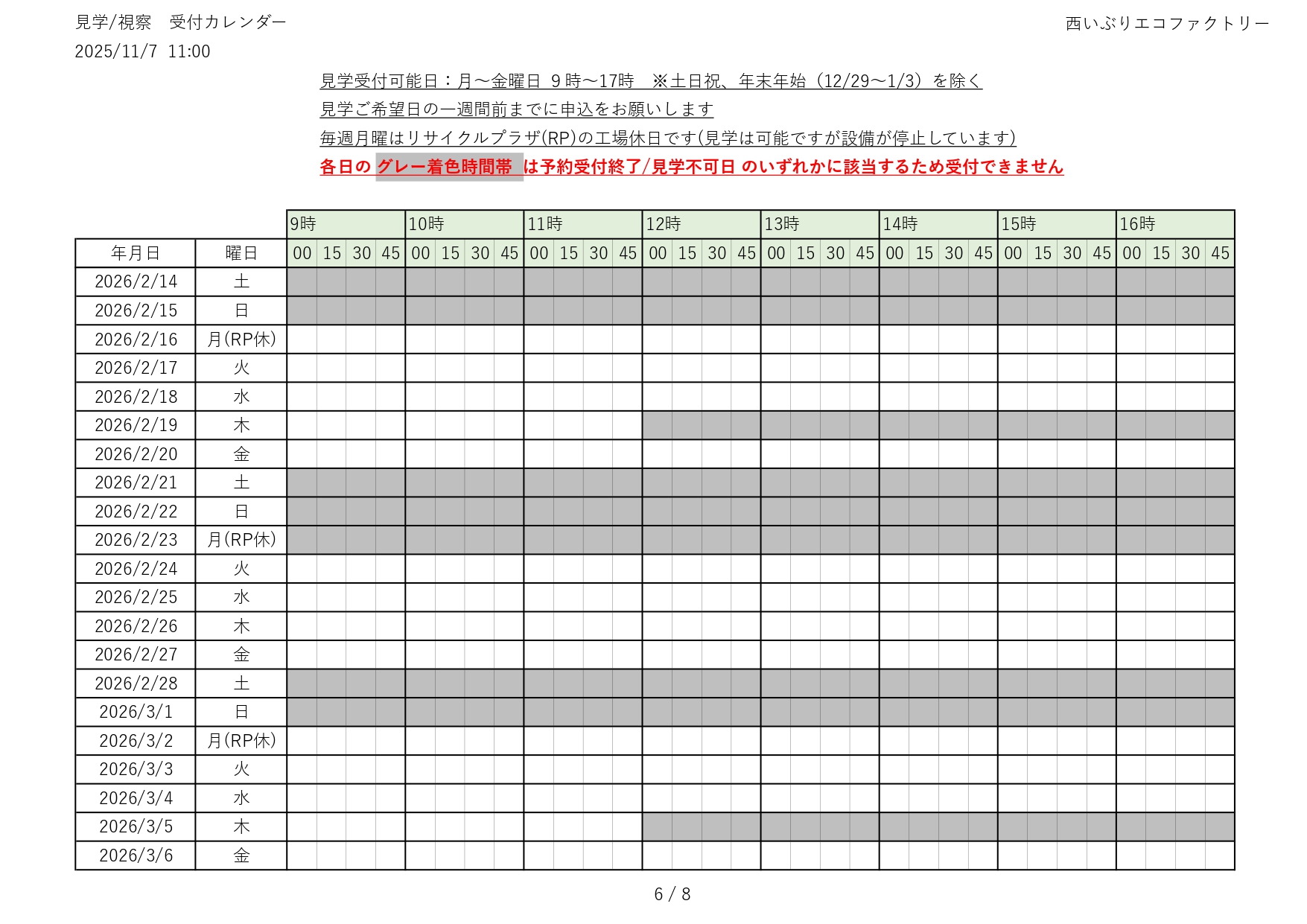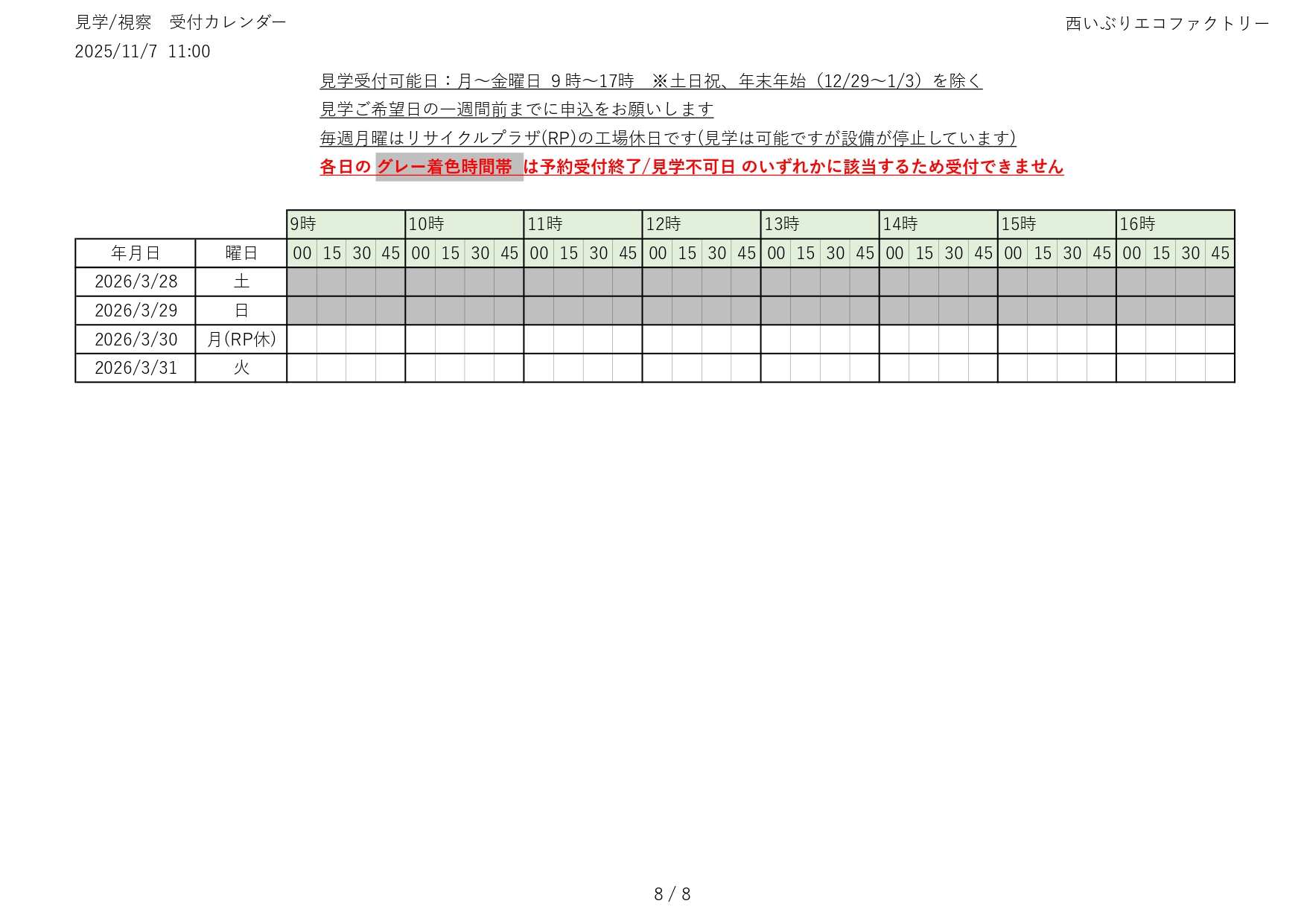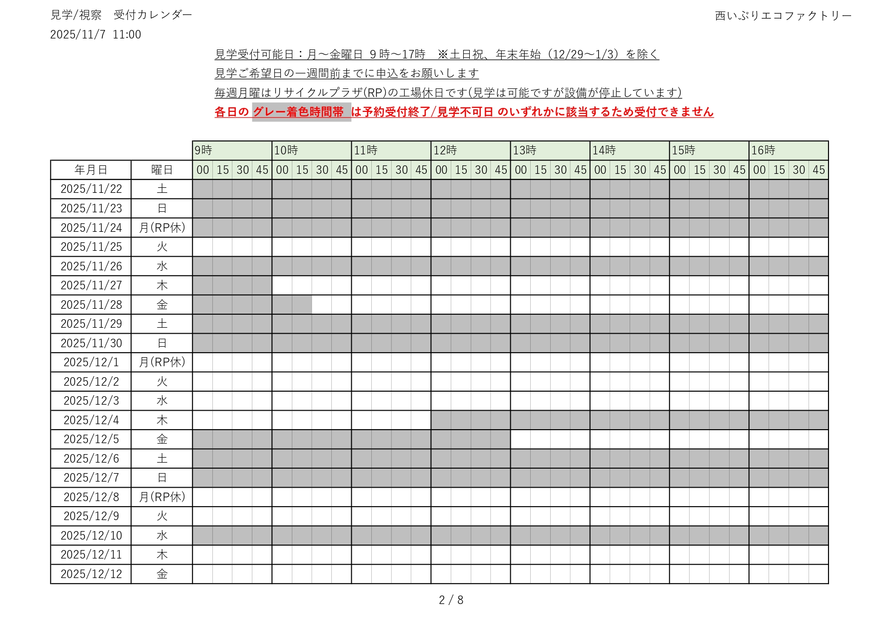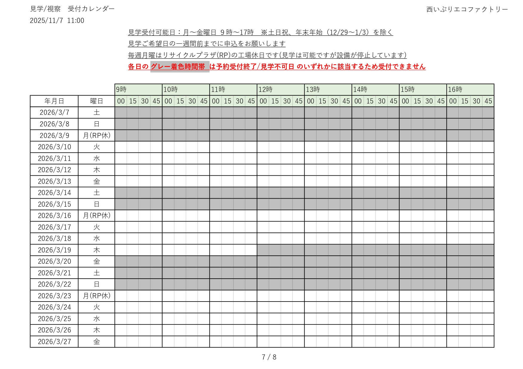 令和7(2025)年度 見学の受付(予約)状況をお知らせします