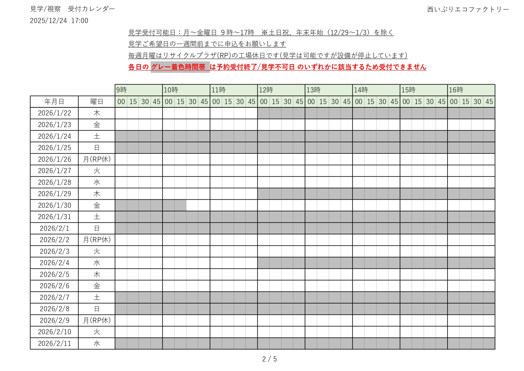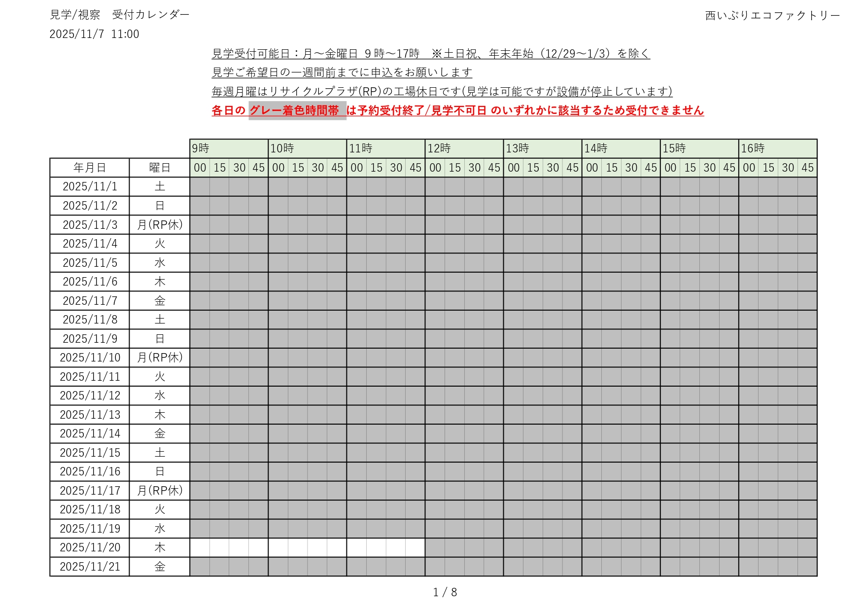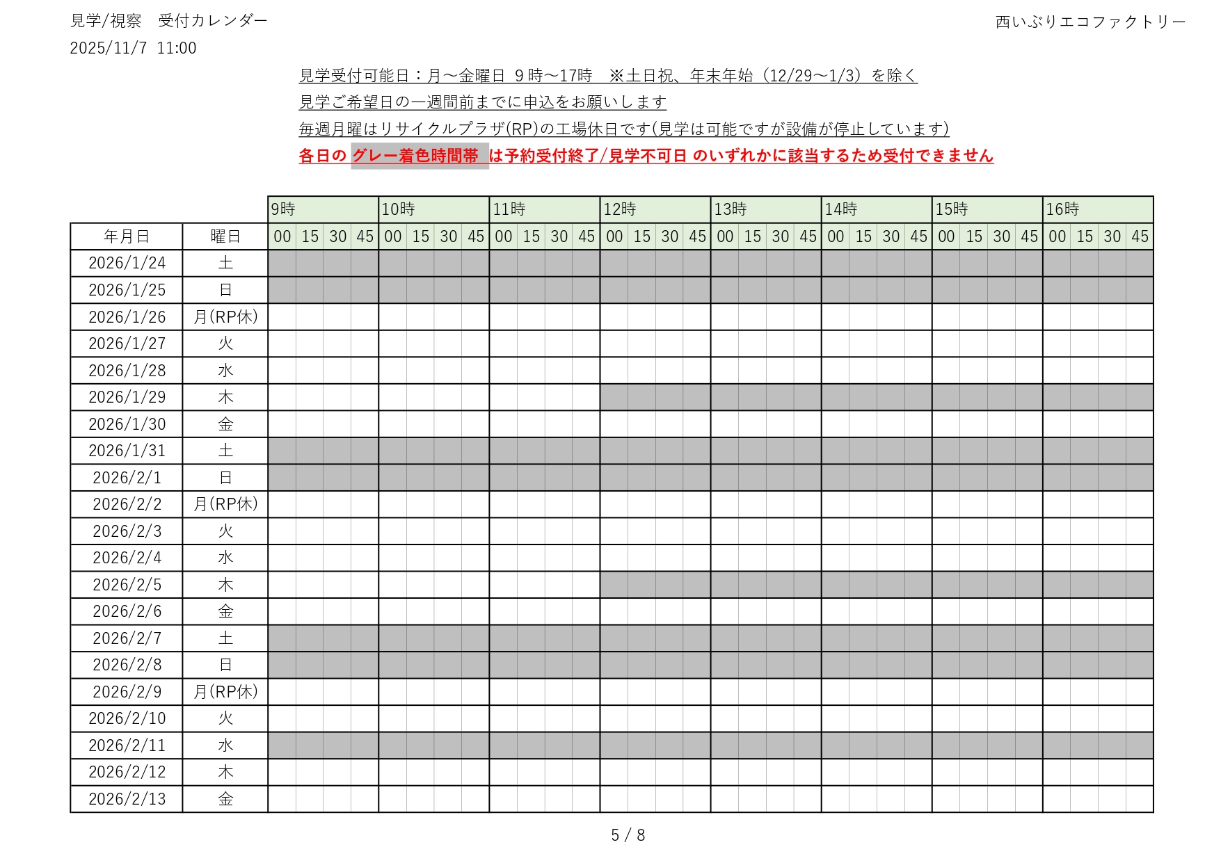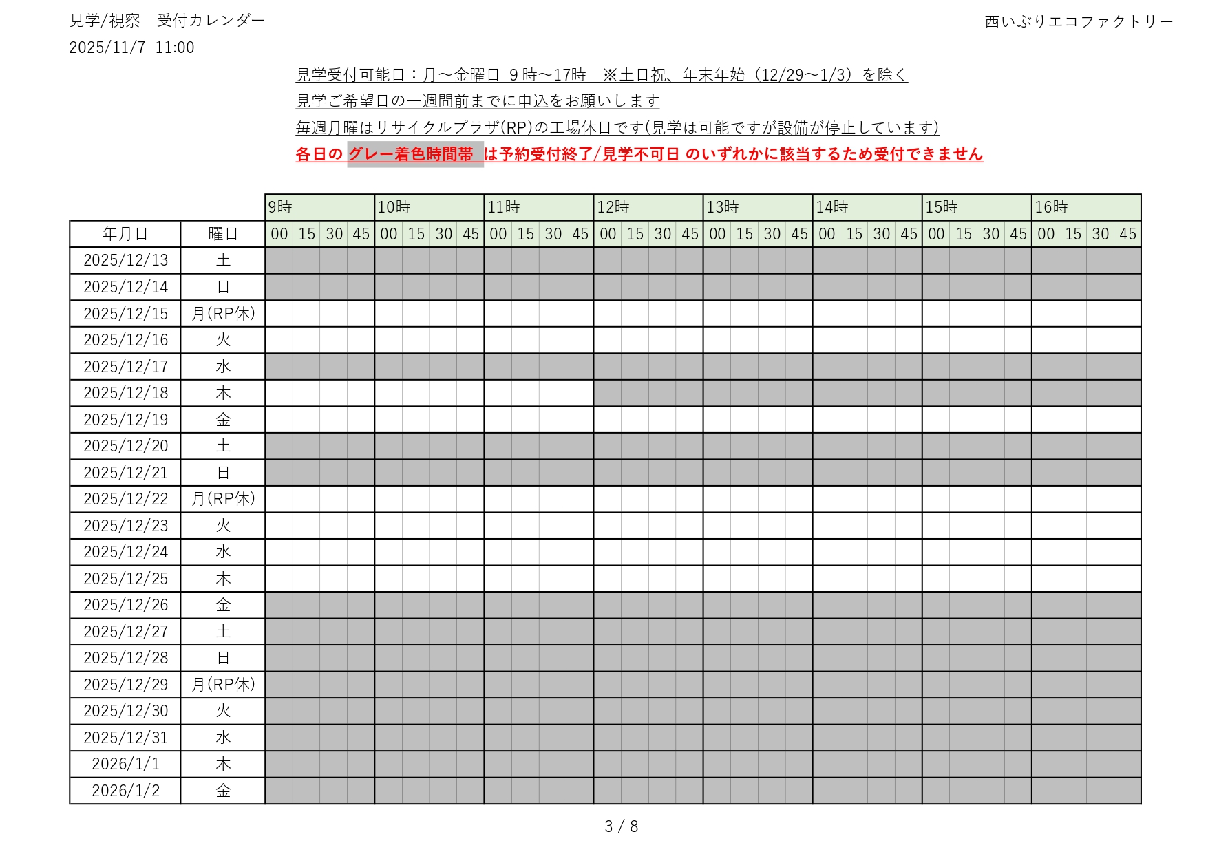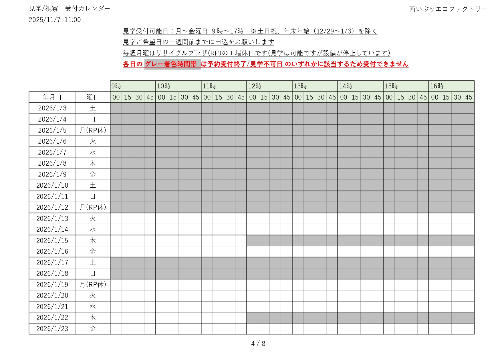 令和7(2025)年度 見学の受付(予約)状況をお知らせします
