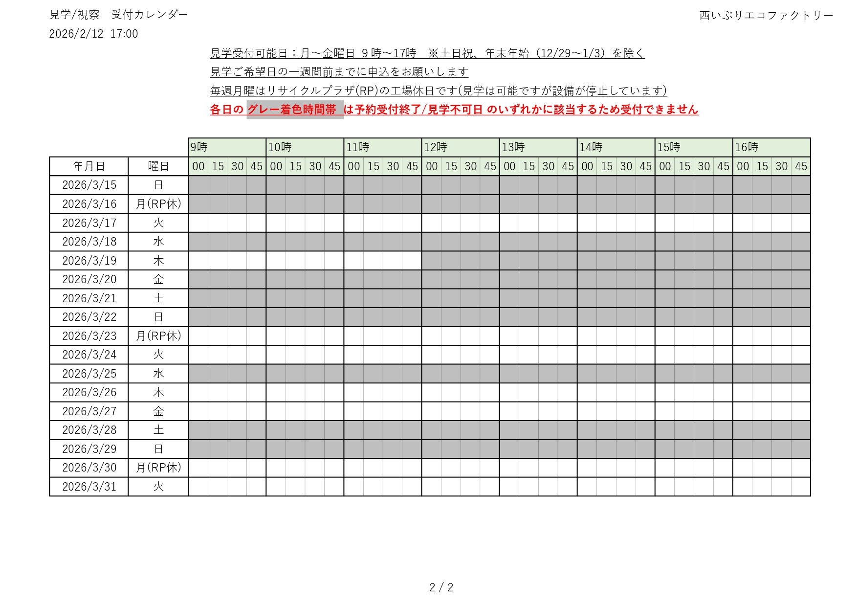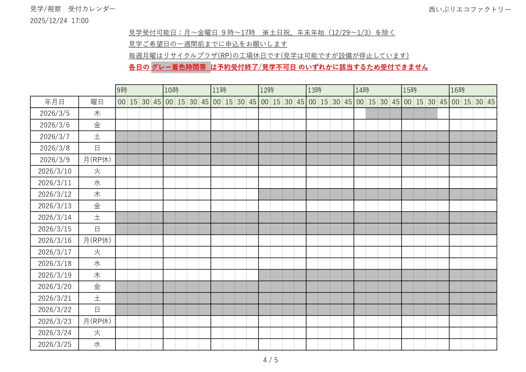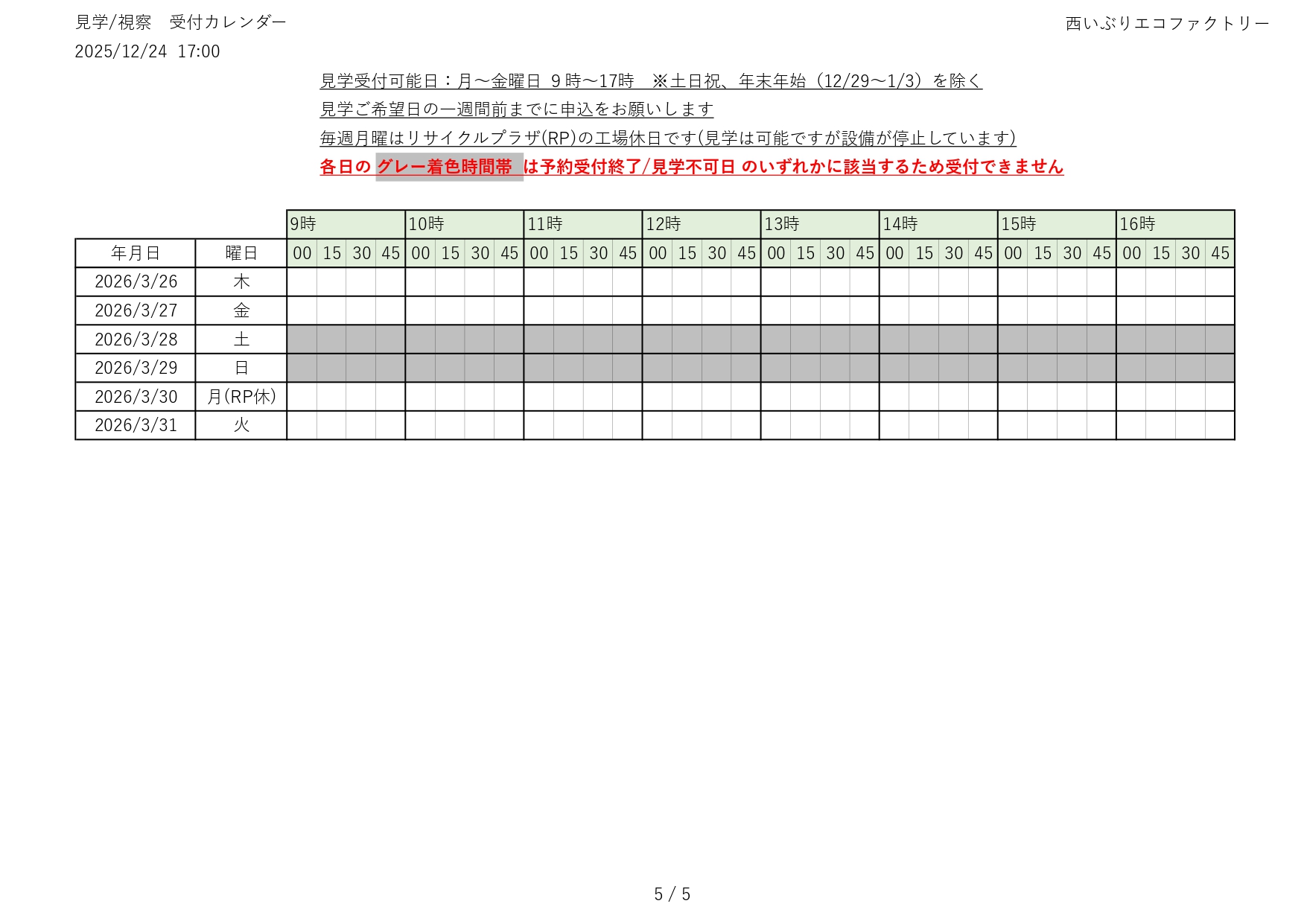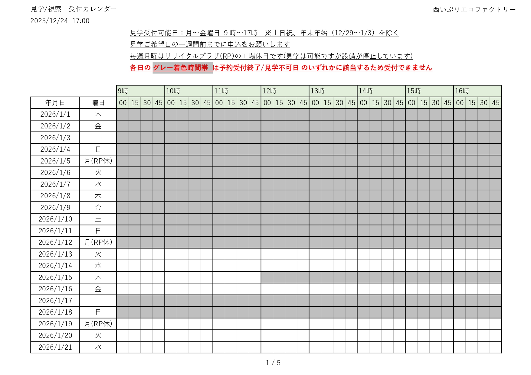 令和7(2025)年度 見学の受付(予約)状況をお知らせします